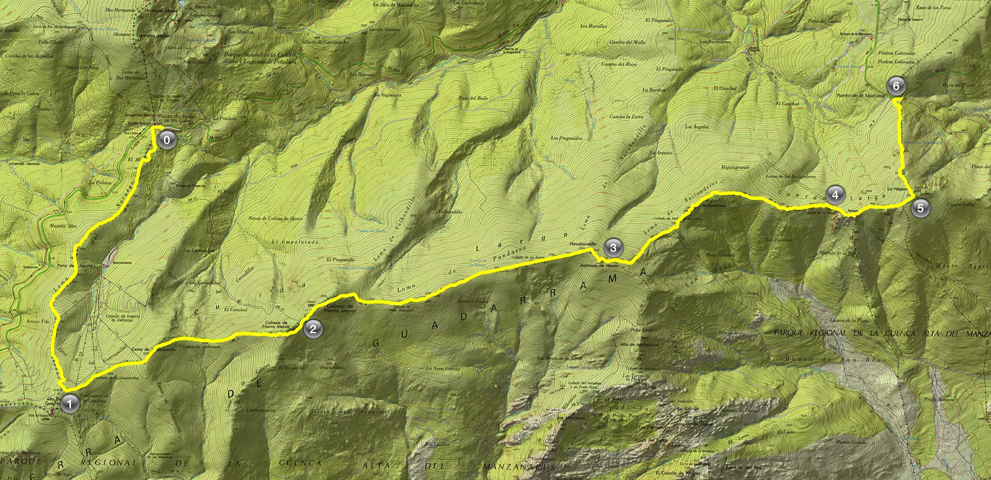 (Pto. Cotos-Loma del Noruego-Guarramillas-Valdemartín-Cabezas de Hierro-Loma del Pandasco-Asómate de Hoyos-Bailanderos-Najarra-Morcuera)