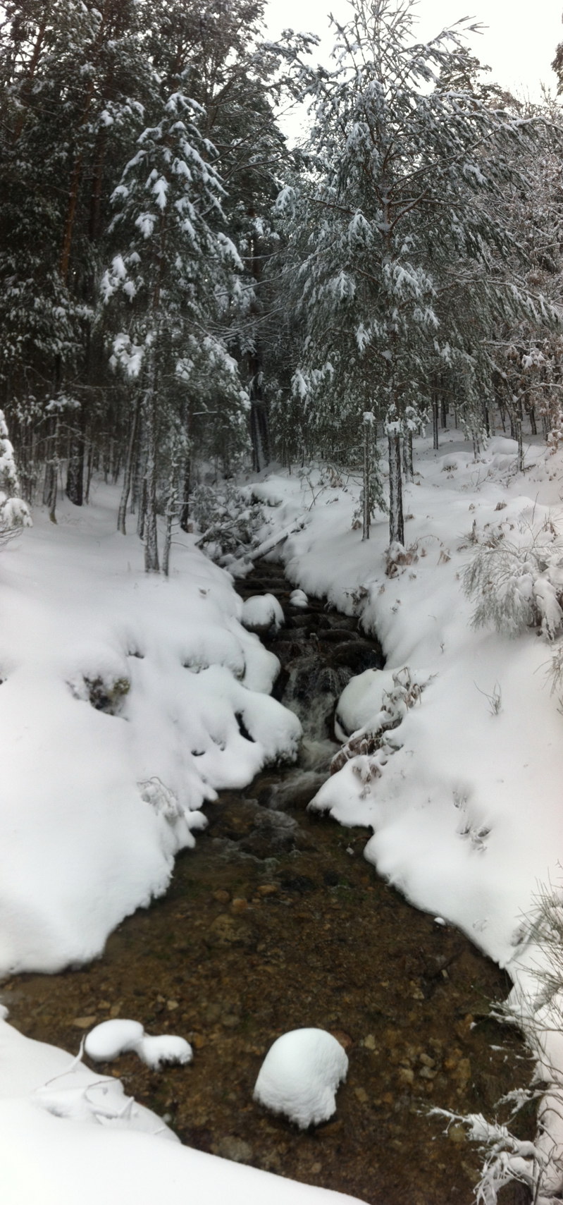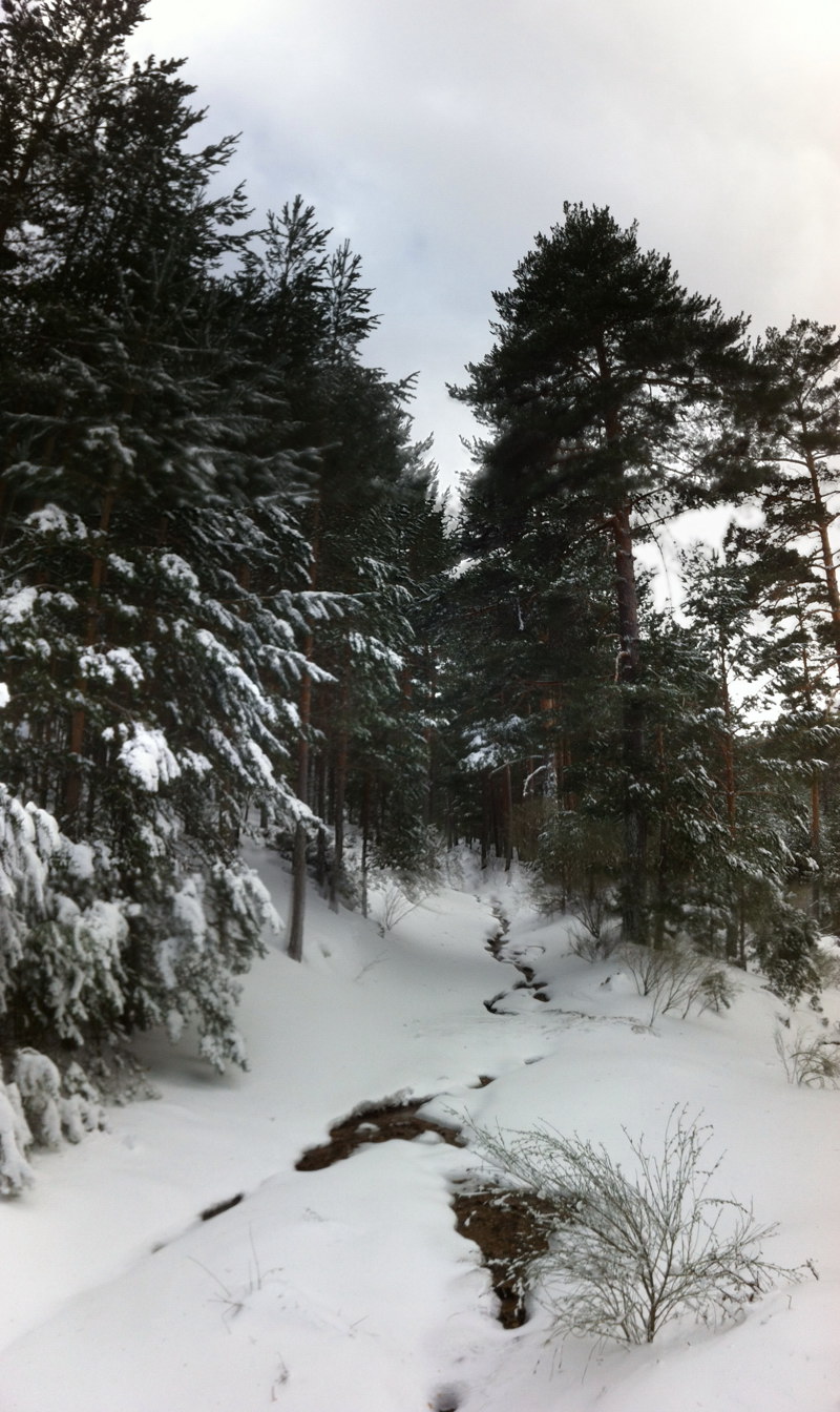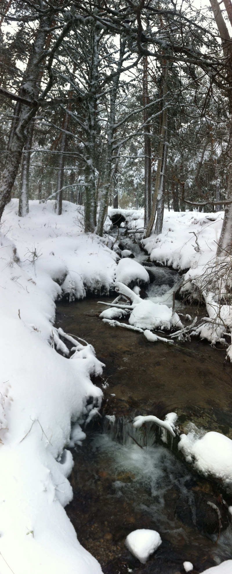 Después de las nevadas de la semana, cojo las raquetas para darme una vuelta por el camino del Palero. Tenía la intención de bajar por las zetas y volver por la Angostura, pero el Arroyo de Peñalara bajaba con tanta fuerza que no me decidí a cruzarlo e improvisé el regreso por Cabeza Mediana. Aproveché para geocachear, buscando tesoros bajo la nieve. Estaba bastante cubierto, y caía algo de nieve. En las zonas descubiertas, soplaba con fuerza el viento y hacía frío. |