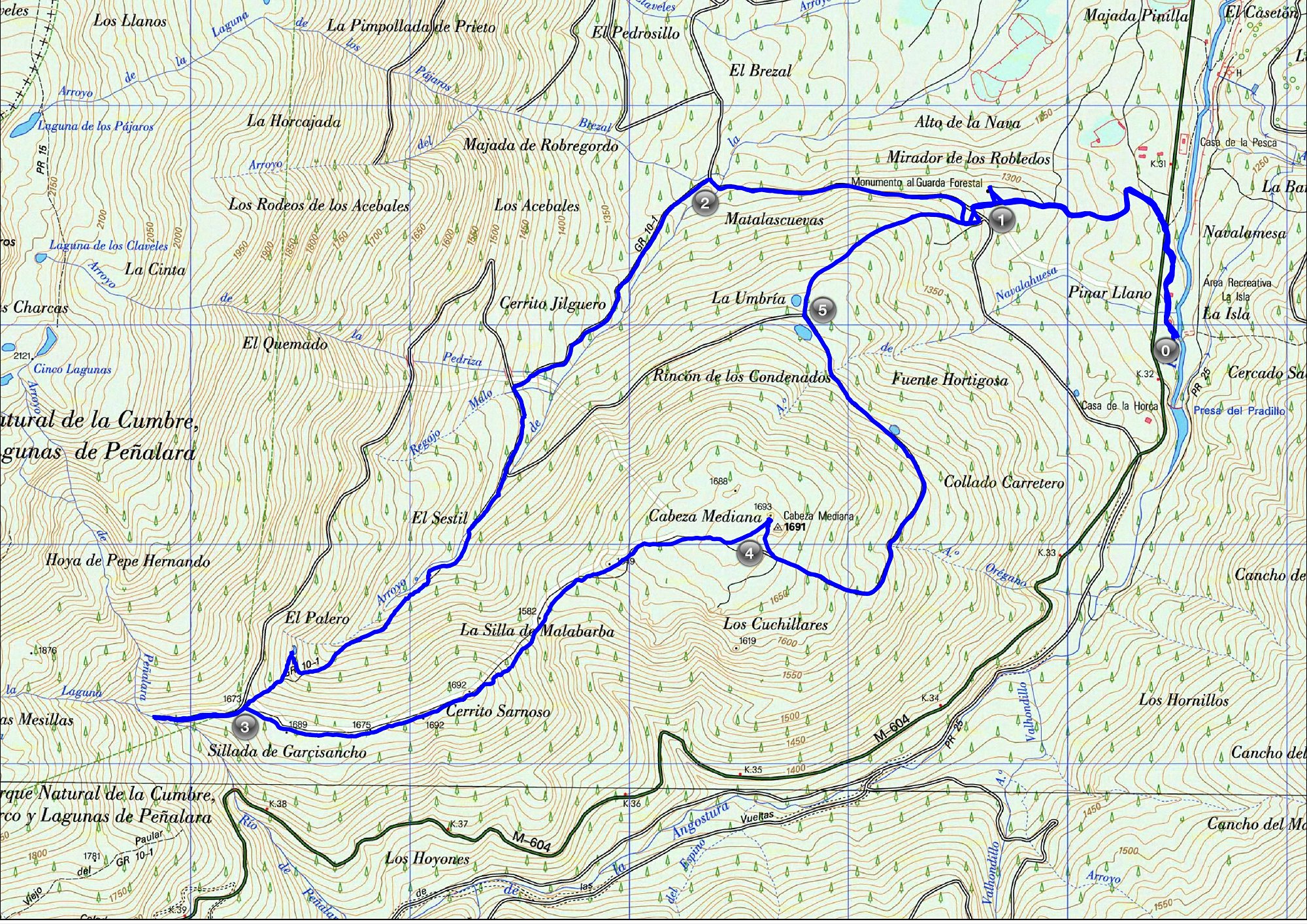 (La Isla-Monumento del Guarda Forestal-Camino del Palero-Cabeza Mediana-Monumento al Guarda Forestal-La Isla)