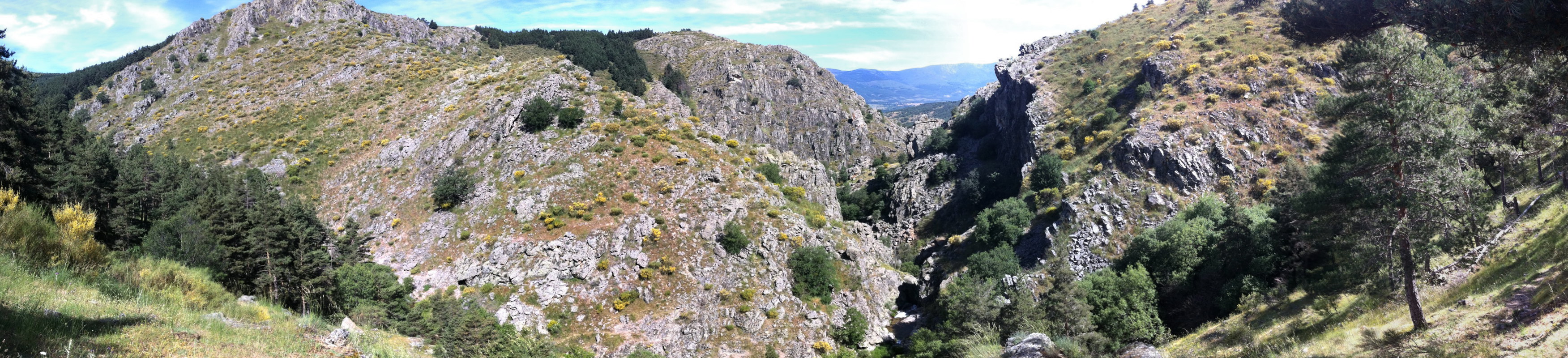 (opción larga: Refugio Juvenil - GR10 - (opción corta: km 20 de la M611) Los Barracones - Arroyo Aguilón - Riscos del Purgatorio - Cerro Merino, opción larga hasta: Refugio Juvenil)