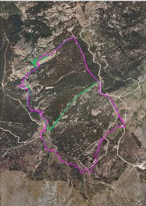 Pista forestal (30%), cortafuegos (40%), senda (20%), campo traviesa (10%)