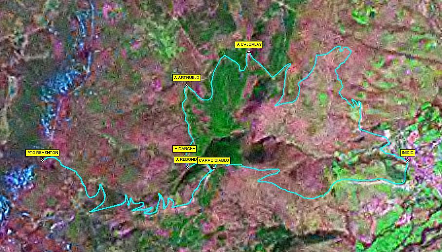 Indicaciones Google Maps. Elija primero un punto de inicio en la página principal de senderismo y pulse luego en el mapa el punto destino (salvo sobre un marcador, ya que ahí o bien aproxima el mapa o bien salta a la información relacionada)